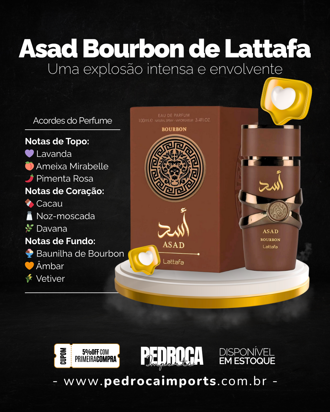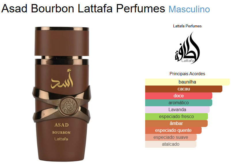 Asad Bourbon de Lattafa Perfumes é um perfume masculino da linha oriental especiada, que exala intensidade, mistério e sofisticação. Ideal para quem ama fragrâncias marcantes e envolventes, sua fórmula combina sensualidade com um perfume ousado e moderno.