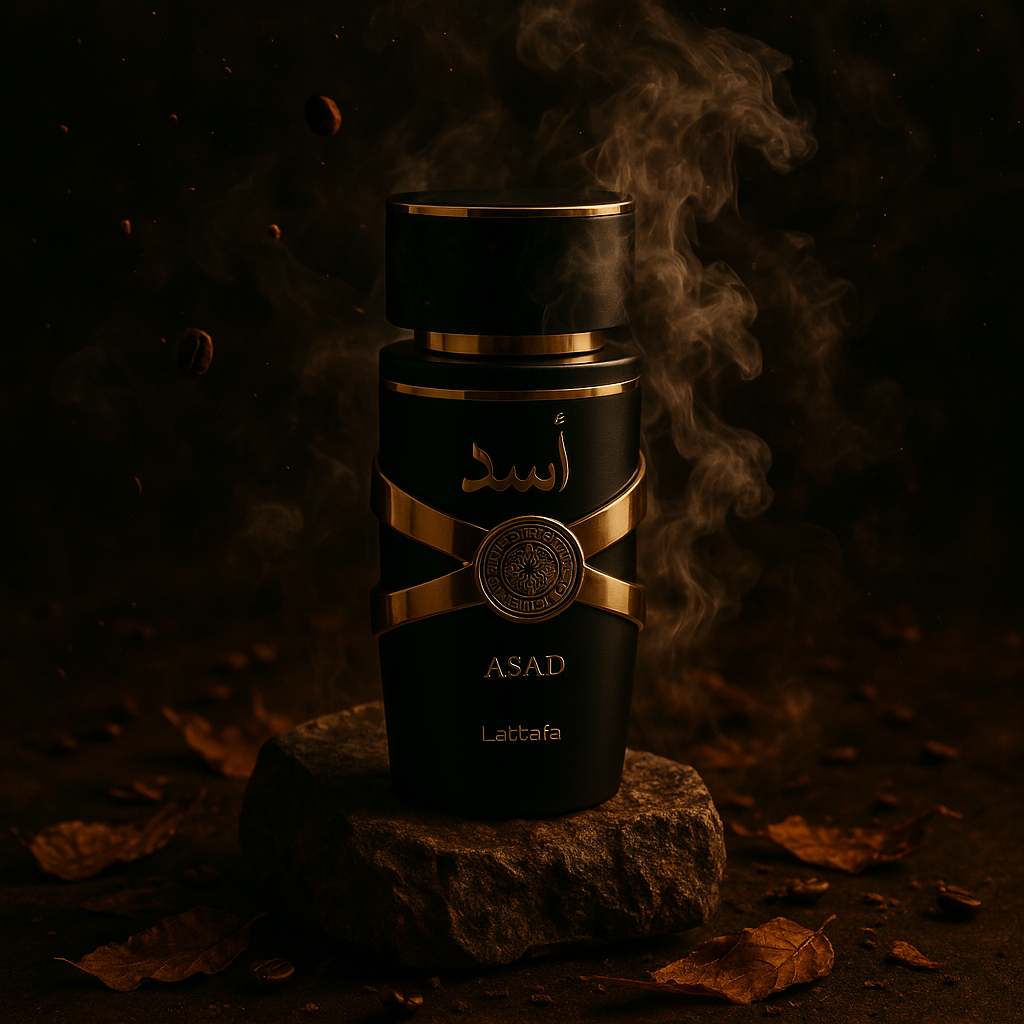 Asad de Lattafa Perfumes é um perfume Oriental Masculino, lançado em 2021. Uma fragrância intensa e marcante que combina especiarias, madeiras e toques gourmand, perfeita para homens que buscam presença e sofisticação. Sua abertura traz uma combinação vibrante de pimenta preta, tabaco e abacaxi, conferindo um frescor picante e frutado. No coração, notas envolventes de patchouli, café e íris criam uma aura aromática e sofisticada. O fundo é rico e quente, formado por baunilha, âmbar, madeira seca, benjoim e ládano, que oferecem uma assinatura duradoura e envolvente.